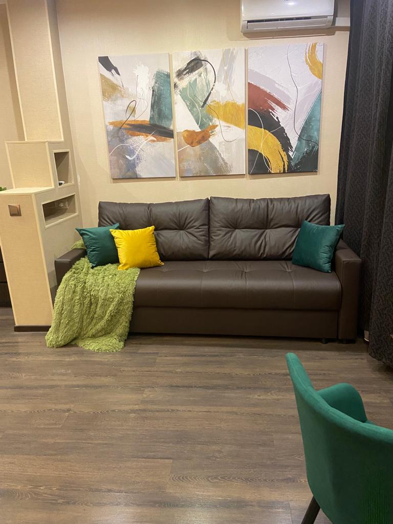 Фотографии соответствуют реальному виду квартиры. Квартира оснащена всем необходимым для вашегокомфортного проживания: диван-кровать (с ортопедическим основанием для ежедневного сна), TV, микроволновая печь, электропечь, холодильник, кондиционер, стиральная машина, небольшой компьютерный столик, вместительные шкафы для одеждыи т.д. В квартире есть одеяла, подушки, плед, постельное белье, кастрюли, сковородка, кофеварка, посуда и т. д.Много вещей новых, в упаковке.